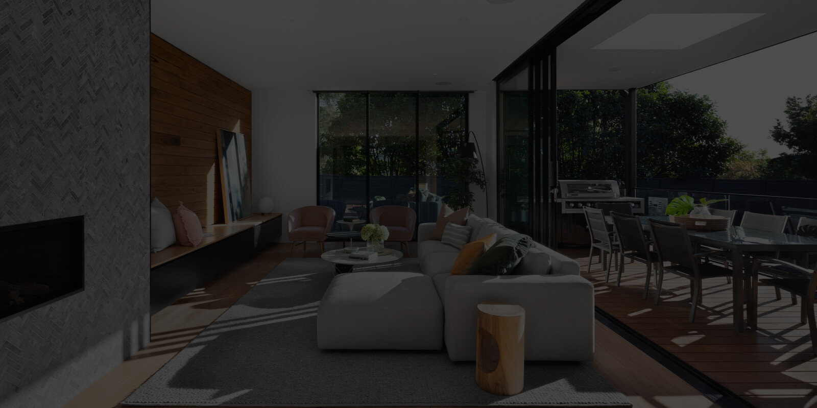 Запускается система мультирум: опускается экран, включается проектор, акустическая система.